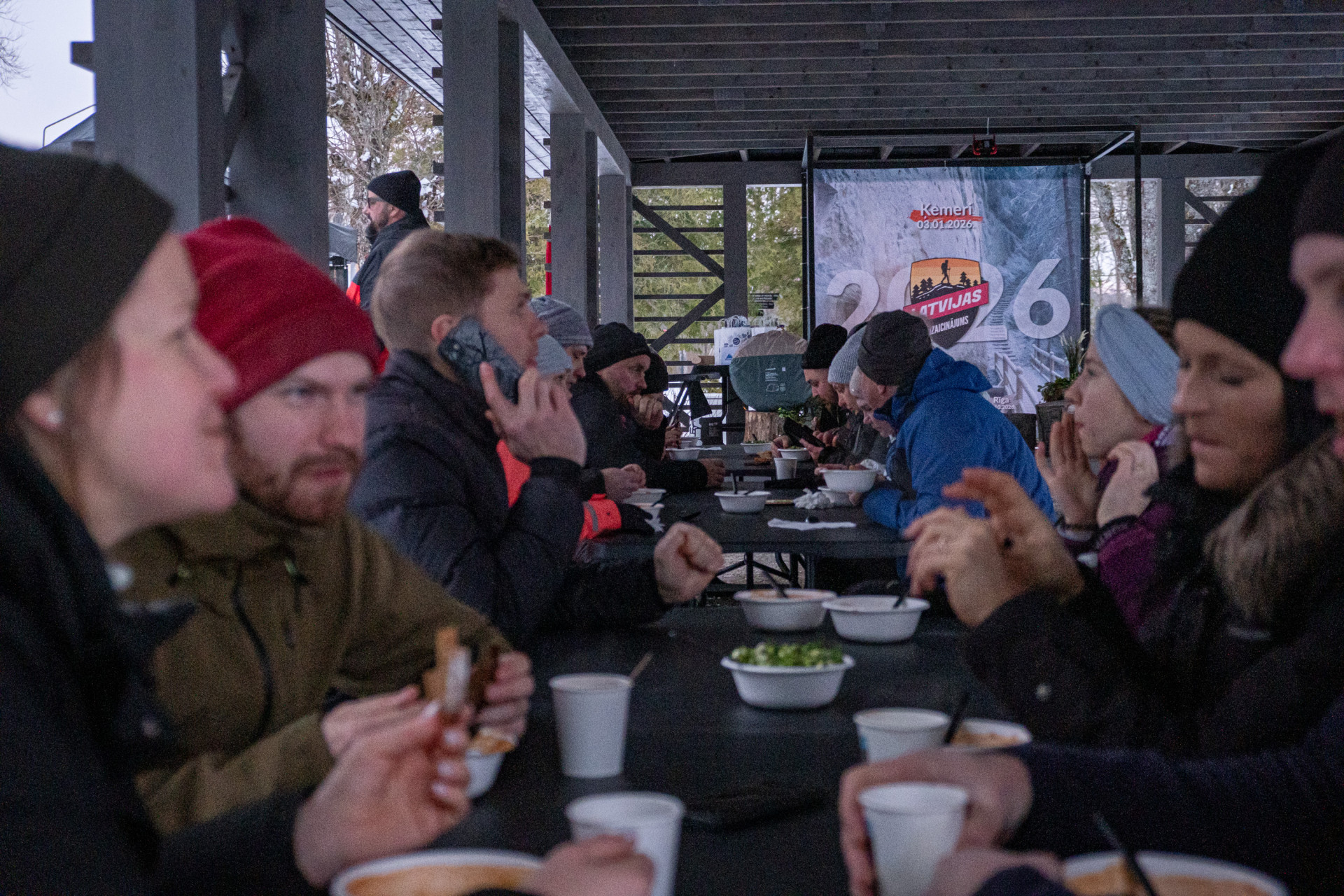 Pārgājiena finišā dalībniekus sagaidīja silts un ļoti gaidīts brīdis - kopīga zupa, kas jau ir LATVIJAS IZAICINĀJUMS tradīcija. Dienas noslēgumā dalībnieki vienojās kopīgā loterijā, kur varēja laimēt atbalstītāju sarūpētas balvas.